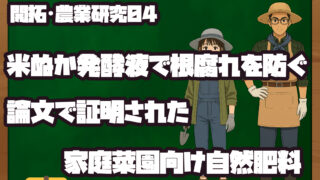 家庭菜園での根腐れ対策に注目!米ぬかを発酵させた液肥が植物の成長を促進し、根腐れ病原菌を抑制する効果が論文で証明されました。簡単な作り方や使い方も紹介しています。