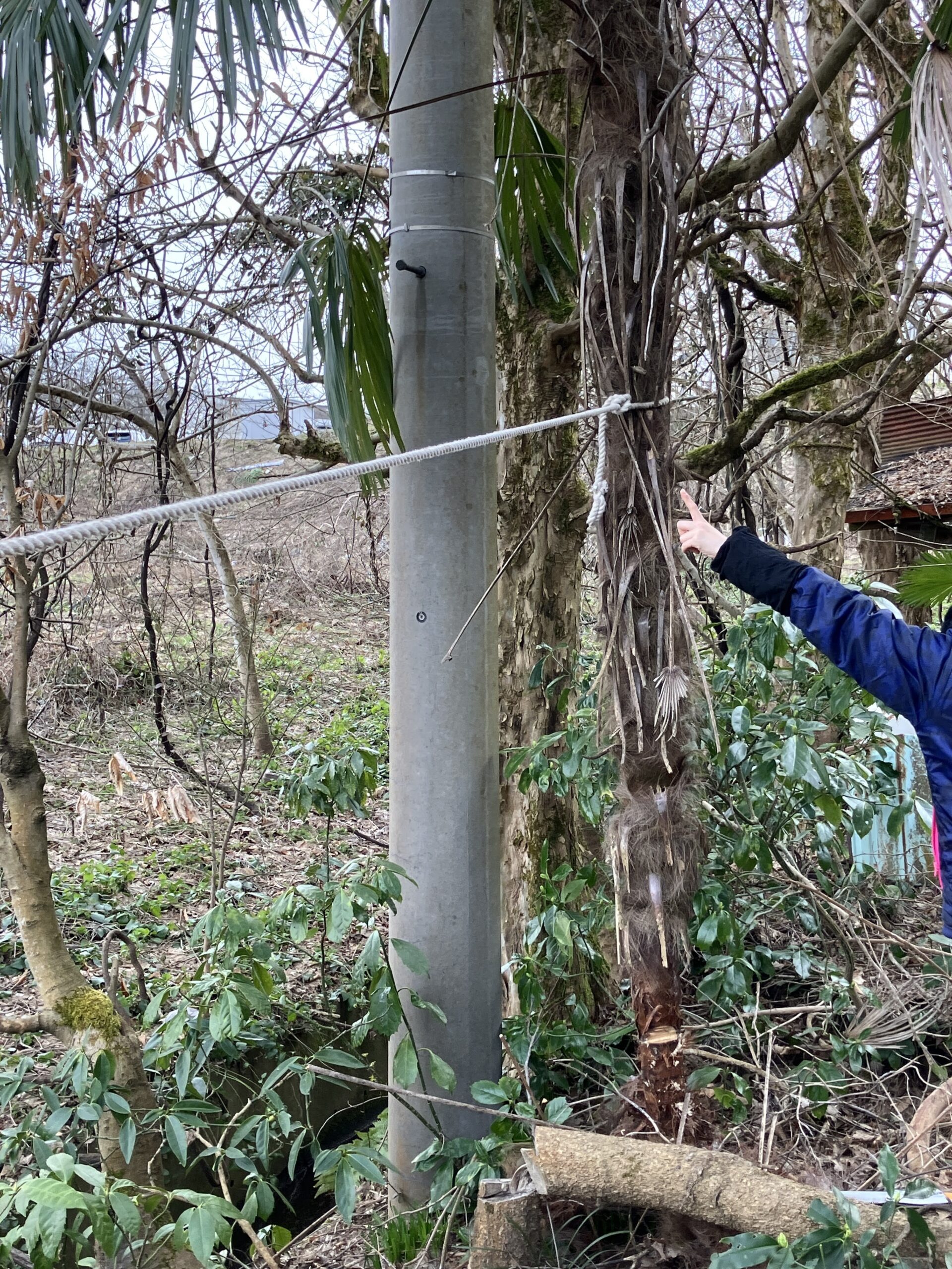 - シュロは倒す方向に牽引しながら切るのが安全。