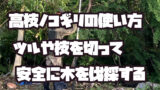 ※要領は木の伐採をと一緒で倒す方向に受け口を作って、追い口から切れ目を入れて木の重さで自然に倒すようにします。