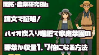 畑づくり・自給自足 論文で証明!バイオ炭入り堆肥で家庭菜園の野菜が収量1.7倍になる方法 バイオ炭入り堆肥で家庭菜園の収量が平均1.7倍に!最新のメタ解析論文をもとに、効果の理由と家庭菜園での具体的な使い方をプロがわかりやすく解説します。 2025.12.17 畑づくり・自給自足